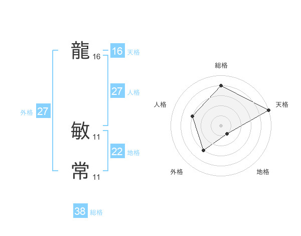 龍 敏常さんの総格は38画の4点!
