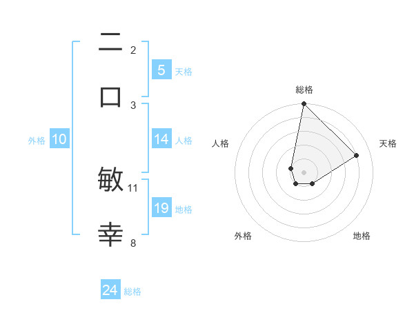 二口 敏幸さんの総格は24画の5点!