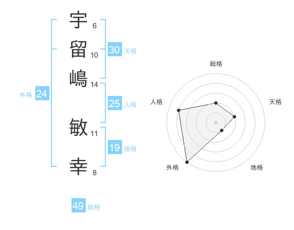 宇留嶋 敏幸さんを姓名の画数から五運を鑑定