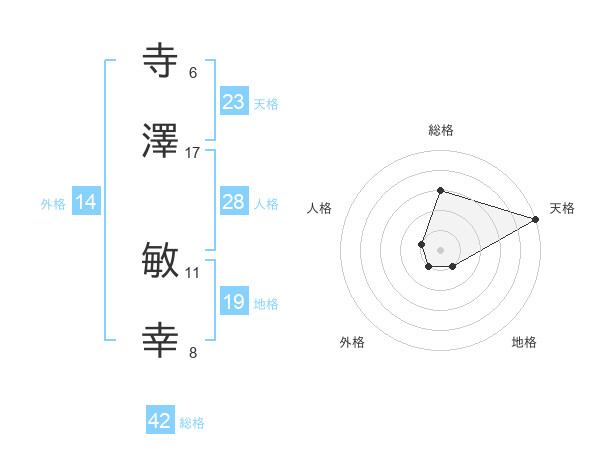 寺澤 敏幸さんの天格は23画の5点!