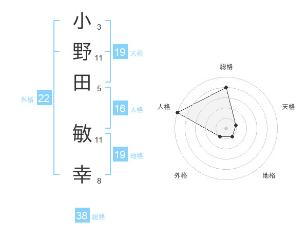 小野田 敏幸さんを姓名の画数から五運を鑑定