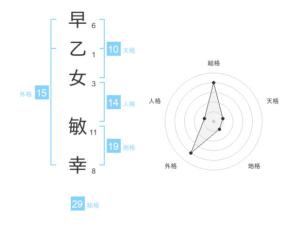 早乙女 敏幸さんの総格は29画の4点!