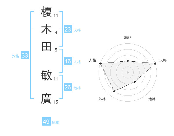 榎木田 敏廣さんを姓名の画数から五運を鑑定