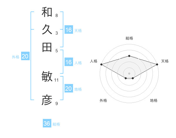 和久田 敏彦さんを姓名の画数から五運を鑑定