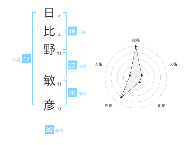 日比野 敏彦さんの総格は39画の5点!