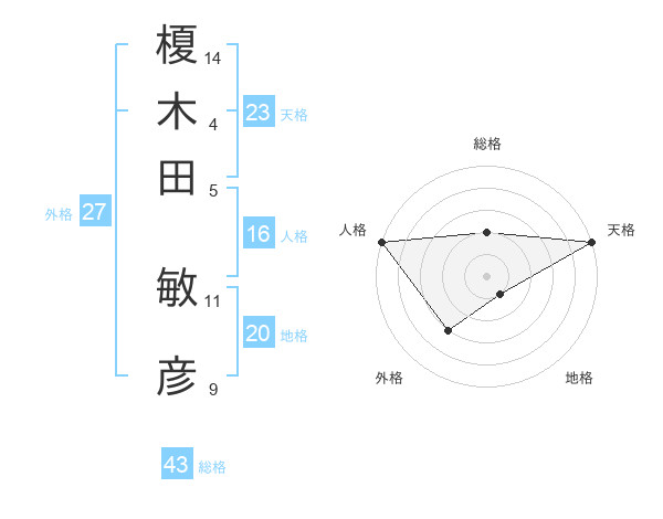 榎木田 敏彦さんを姓名の画数から五運を鑑定