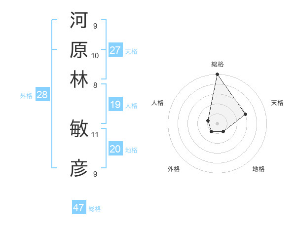 河原林 敏彦さんを姓名の画数から五運を鑑定