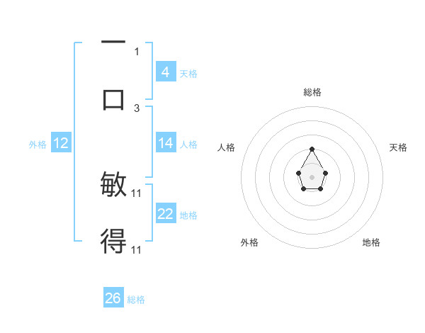 一口 敏得さんの総格は26画の2点!