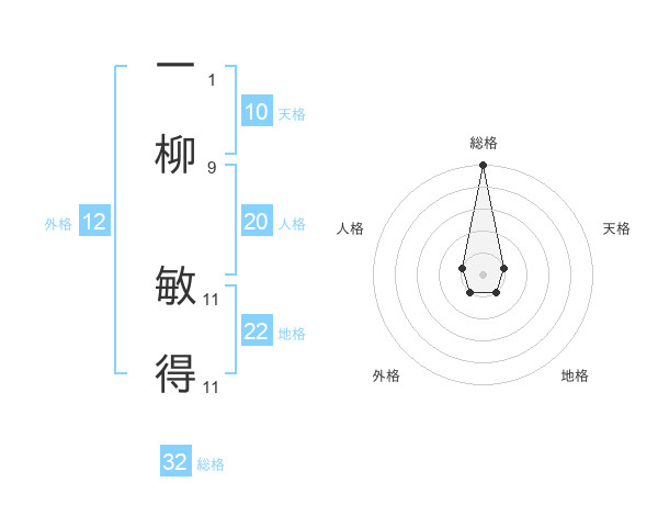 一柳 敏得さんを姓名の画数から五運を鑑定