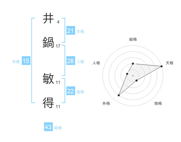 井鍋 敏得さんを姓名の画数から五運を鑑定