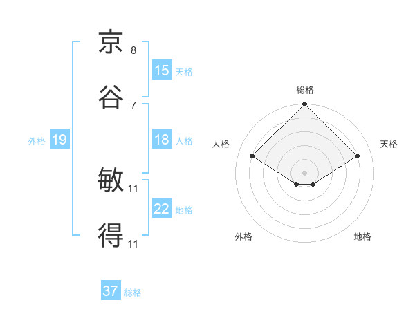 京谷 敏得さんの総格は37画の5点!