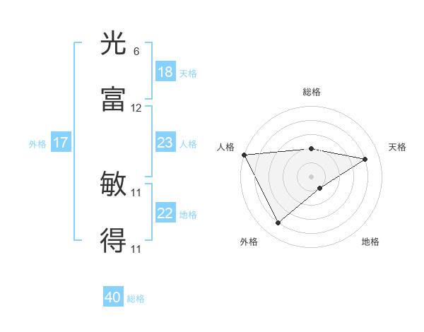 光富 敏得さんの天格は18画の4点!