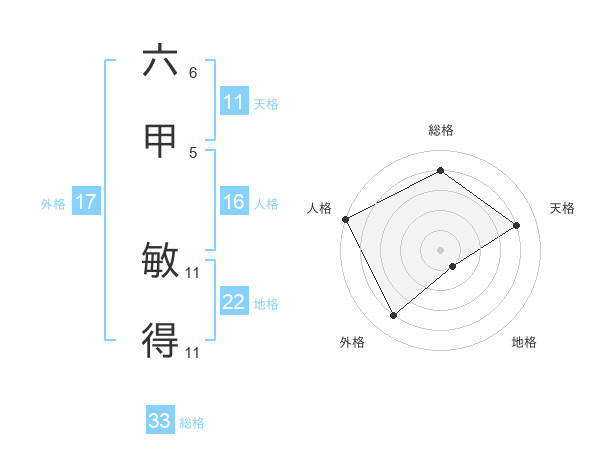 六甲 敏得さんの総格は33画の4点!