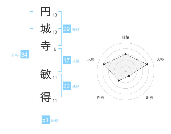 円城寺 敏得さんを姓名の画数から五運を鑑定