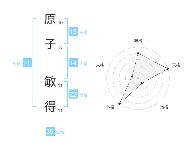 原子 敏得さんの総格は35画の4点!