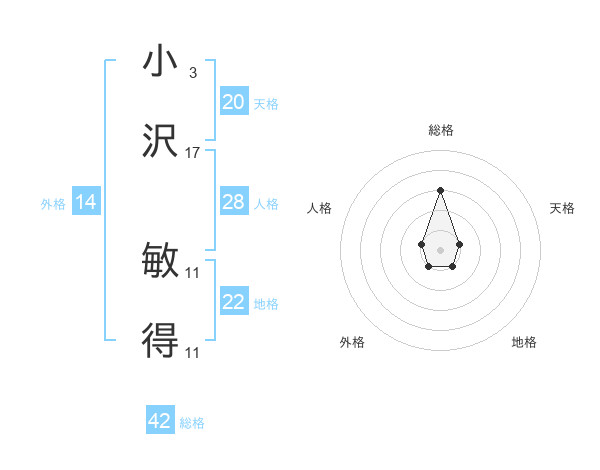 小沢 敏得さんを姓名の画数から五運を鑑定