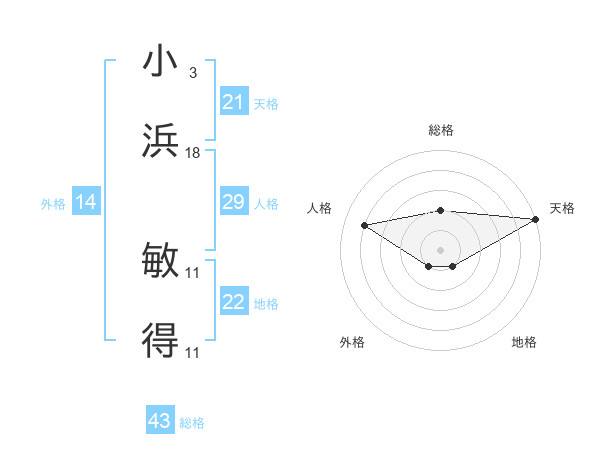 小浜 敏得さんの総格は43画の2点!