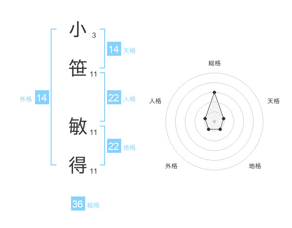 小笹 敏得さんを姓名の画数から五運を鑑定