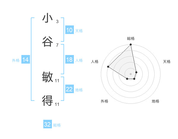 小谷 敏得さんの総格は32画の5点!
