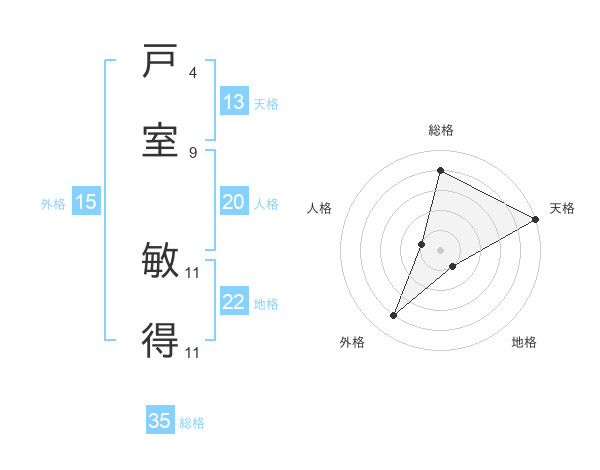 戸室 敏得さんを姓名の画数から五運を鑑定