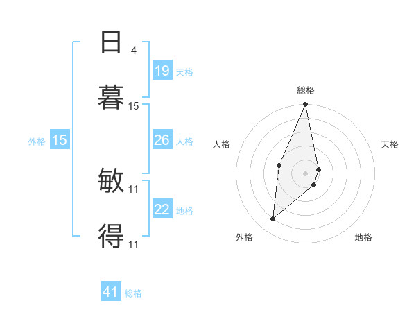 日暮 敏得さんの総格は41画の5点!