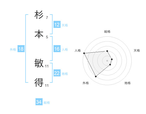 杉本 敏得さんの地格は22画の1点!