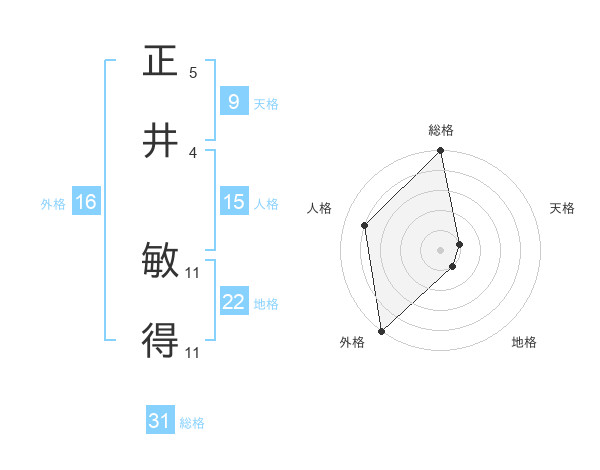 正井 敏得さんの総格は31画の5点!