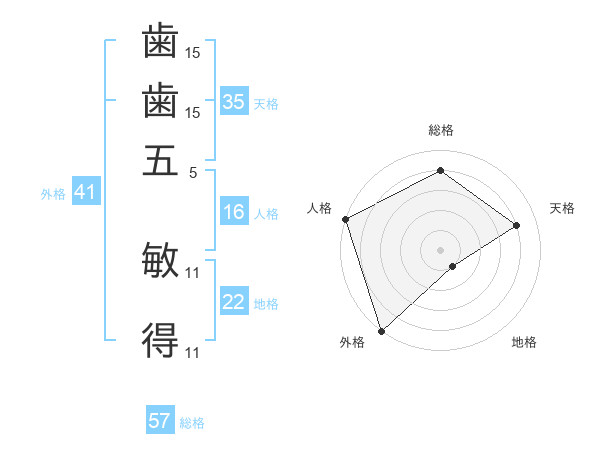 歯歯五 敏得さんを姓名の画数から五運を鑑定