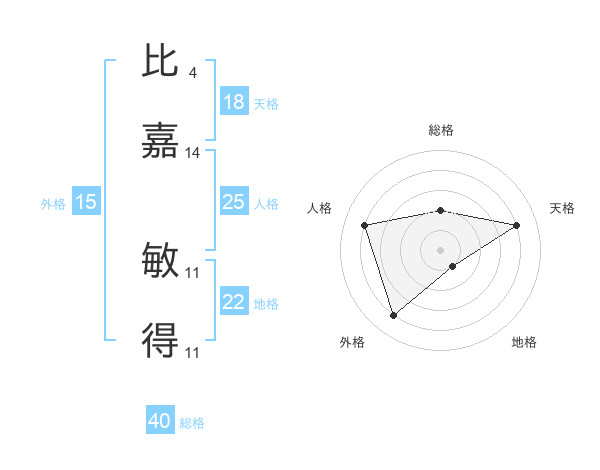 比嘉 敏得さんを姓名の画数から五運を鑑定