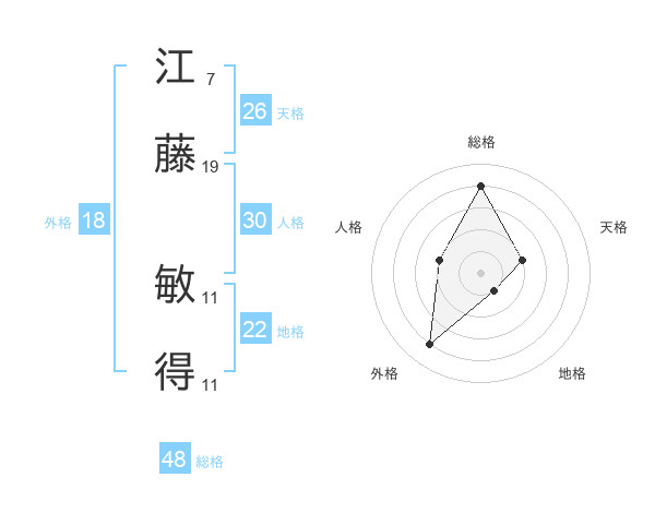 江藤 敏得さんの総格は48画の4点!