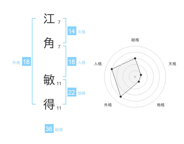 江角 敏得さんの総格は36画の3点!