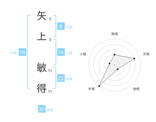 矢上 敏得さんの総格は30画の2点!