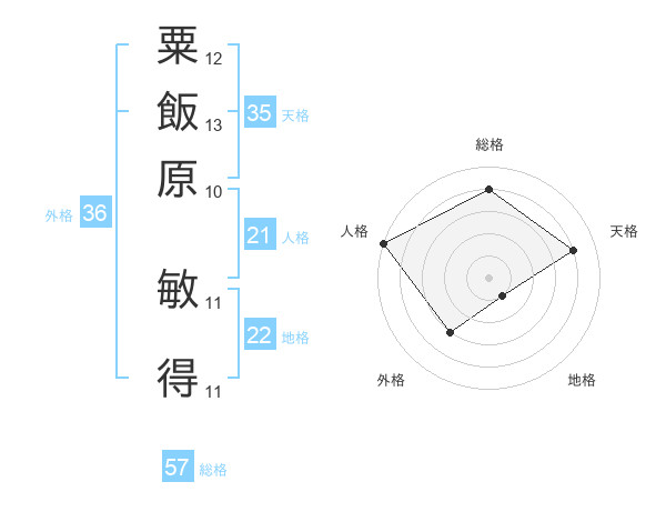 粟飯原 敏得さんを姓名の画数から五運を鑑定
