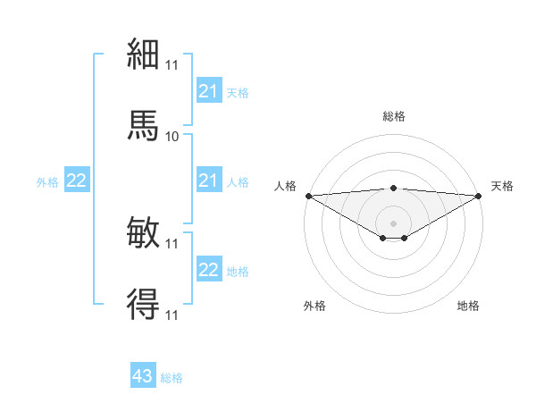 細馬 敏得さんの人格は21画の5点!