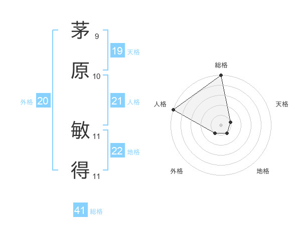 茅原 敏得さんを姓名の画数から五運を鑑定