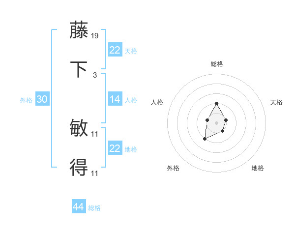藤下 敏得さんを姓名の画数から五運を鑑定