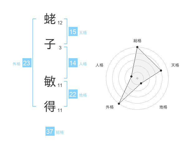 蛯子 敏得さんの総格は37画の5点!