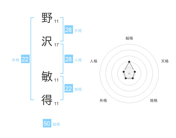 野沢 敏得さんの総格は50画の2点!