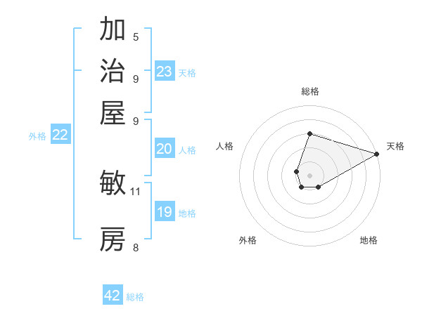 加治屋 敏房さんを姓名の画数から五運を鑑定