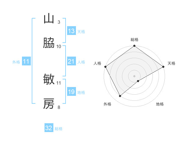 山脇 敏房さんの総格は32画の5点!