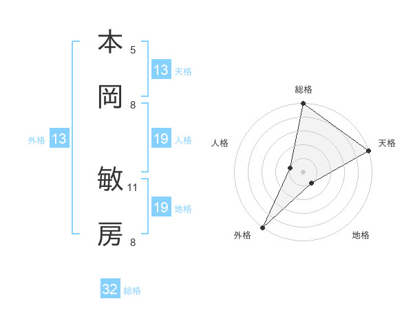 本岡 敏房さんを姓名の画数から五運を鑑定