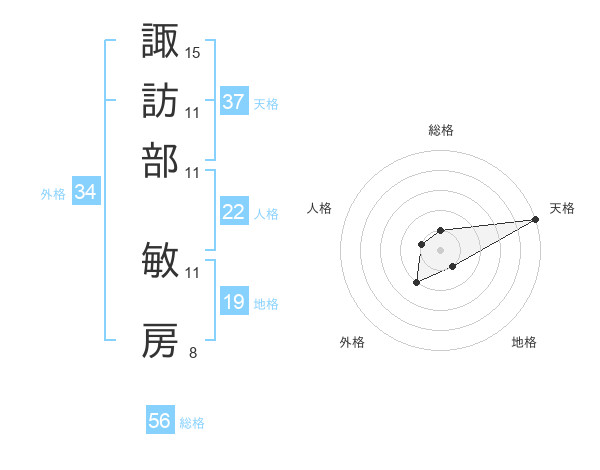 諏訪部 敏房さんを姓名の画数から五運を鑑定