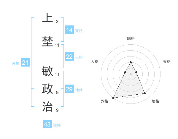 上埜 敏政治さんの総格は43画の2点!