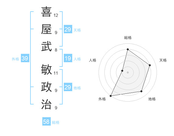 喜屋武 敏政治さんの外格は39画の5点!