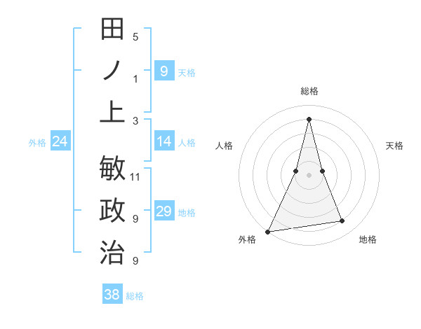 田ノ上 敏政治さんを姓名の画数から五運を鑑定
