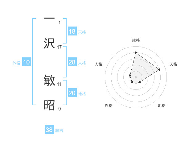 一沢 敏昭さんを姓名の画数から五運を鑑定