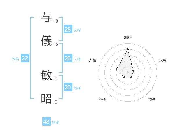 与儀 敏昭さんを姓名の画数から五運を鑑定