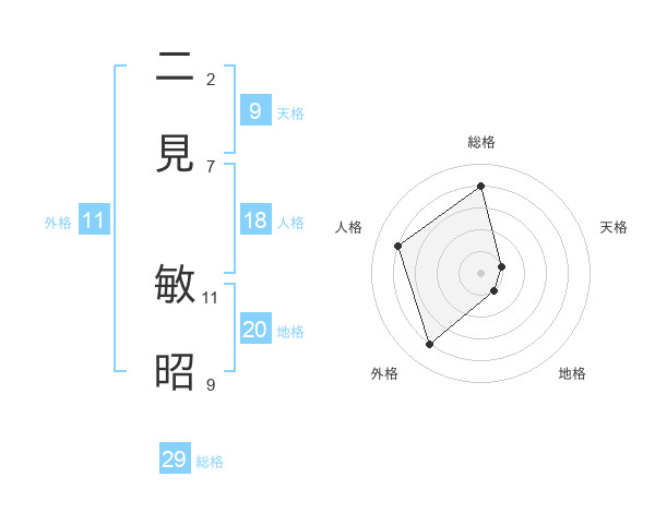 二見 敏昭さんを姓名の画数から五運を鑑定
