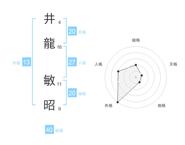 井龍 敏昭さんの天格は20画の1点!