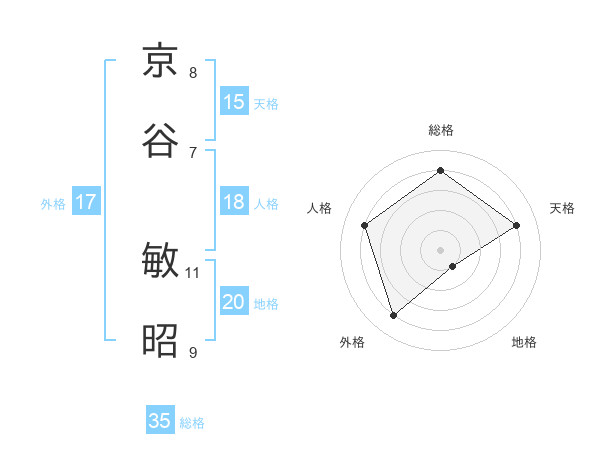 京谷 敏昭さんの総格は35画の4点!